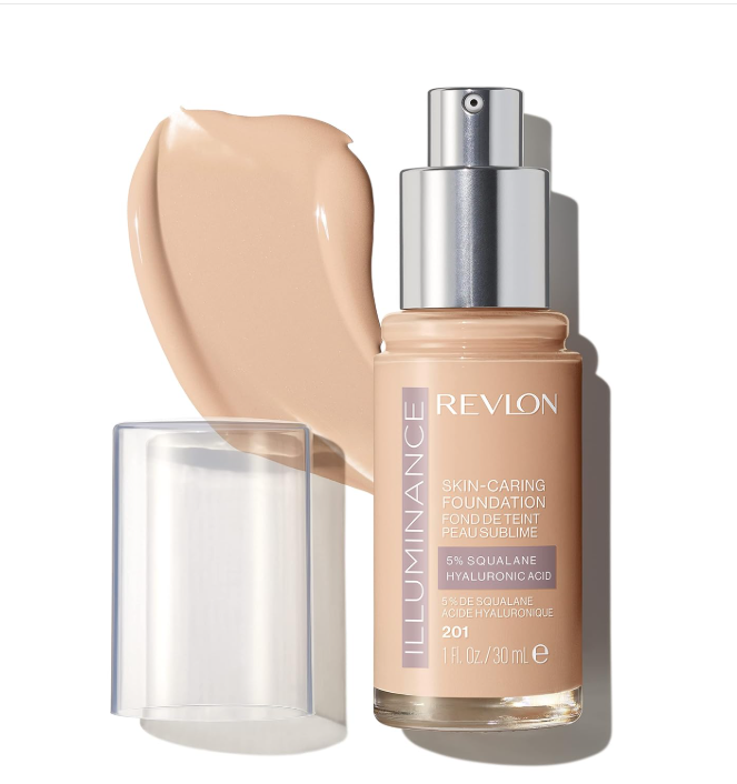 Revlon Illuminance Skin-Caring Liquid Foundation, Hyaluronic Acid, Hydrating and Nourishing Formula with Medium Coverage, 201 Creamy Natural, 1 fl oz