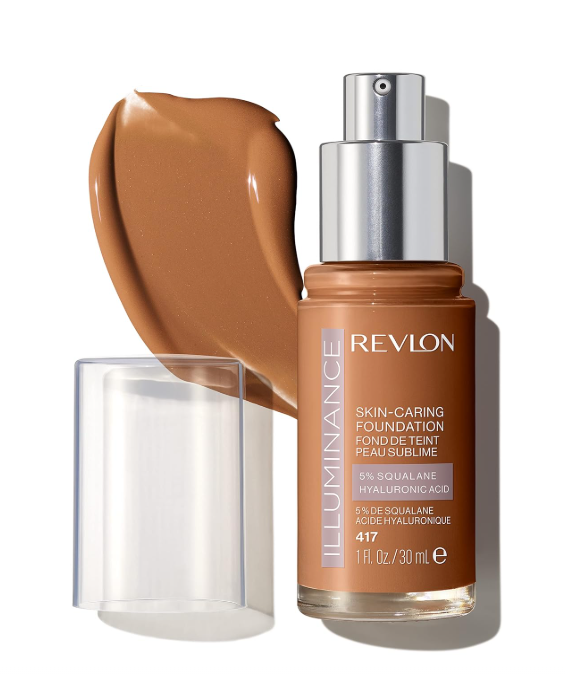 Revlon Illuminance Skin-Caring Liquid Foundation, Hyaluronic Acid, Hydrating and Nourishing Formula with Medium Coverage, 417 Warm Caramel, 1 fl oz